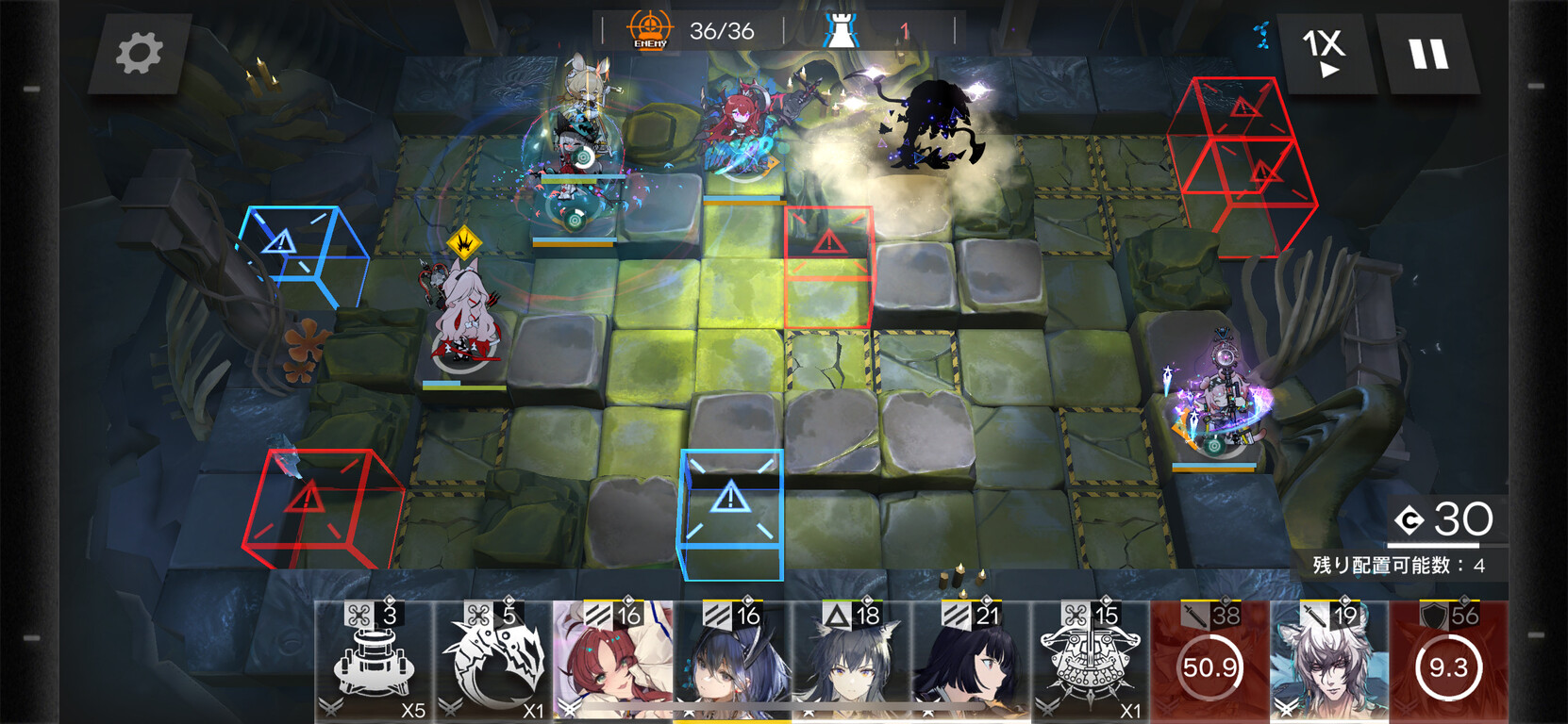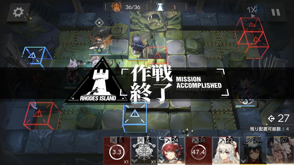 全盛り終わり、遠距離3倍取って左上はカイちゃんで処理して真ん中は隊長で処理したわ🤗