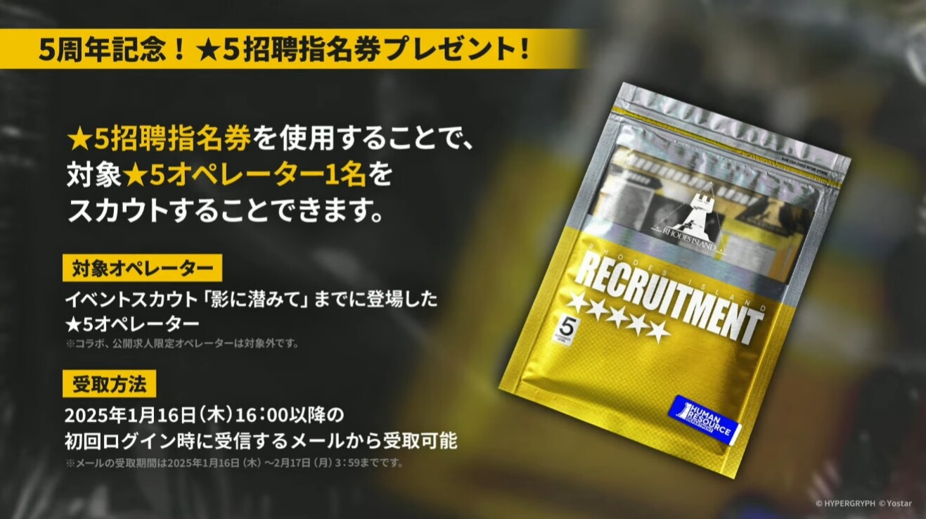 ■5周年記念!「☆5招聘指名券」プレゼント!