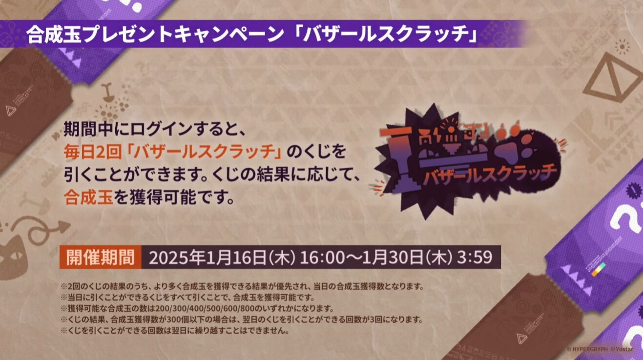 ■合成玉プレゼントキャンペーン「バザールスクラッチ」