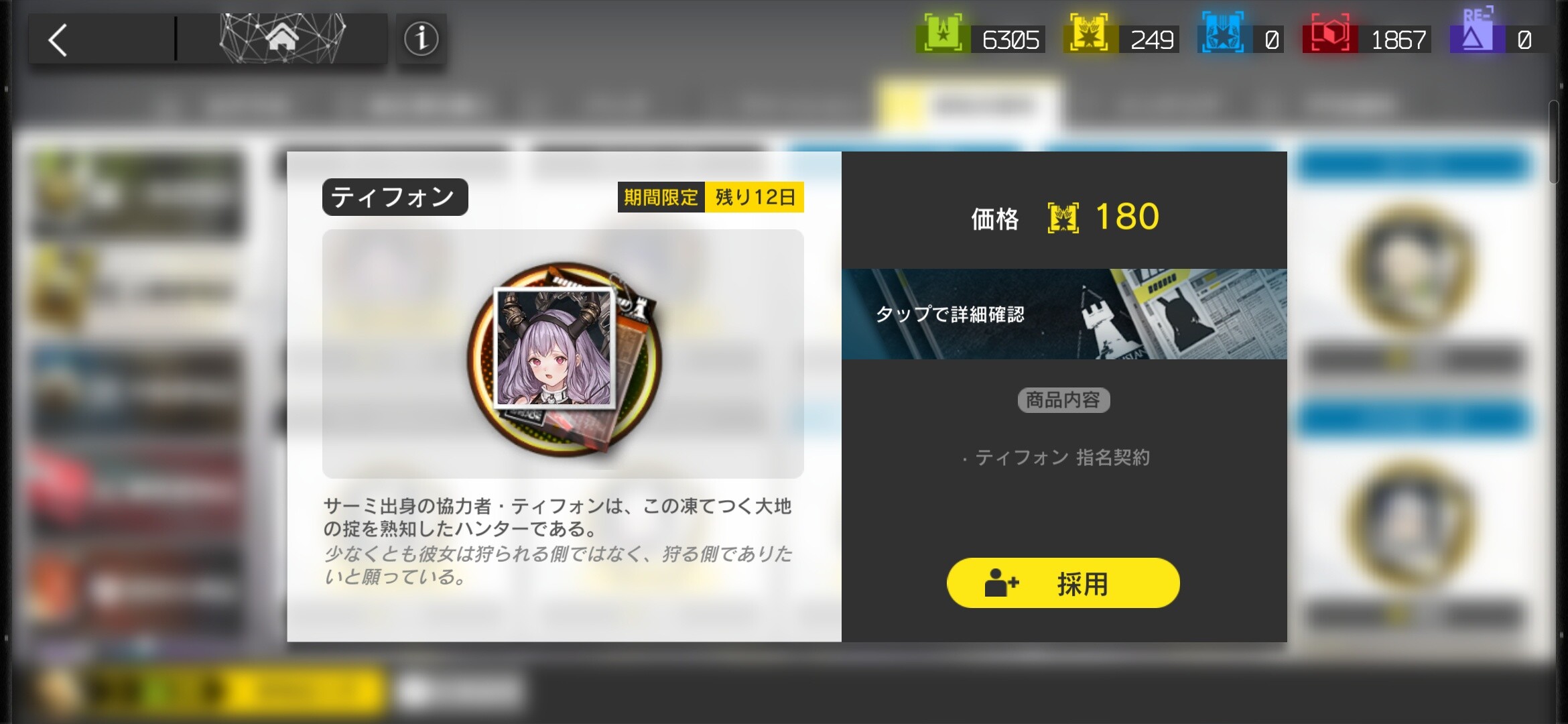 ただもしティフォンきっかけで始めたとかなら逆に最初に取ったほうがいい。なぜならどんなキャラでもいつかは気持ちが離れるし性能面でもどんどん遅れていくから、いざ手に入ったときにはもう気持ち冷めてるとかあるからね。