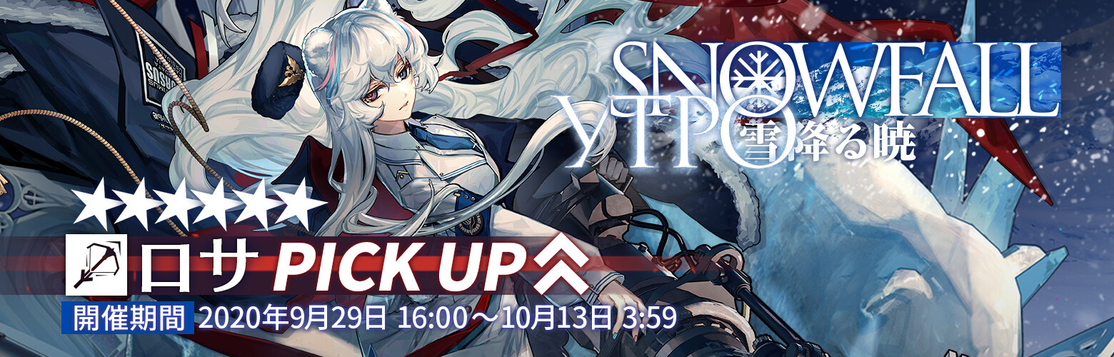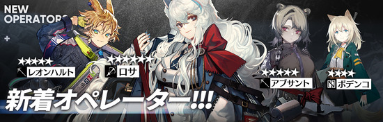 イベントスカウト「雪降る暁」で新オペレーター「★6 ロサ」、「★5 レオンハルト」、「★4 ポデンコ」がスカウト可能です。
