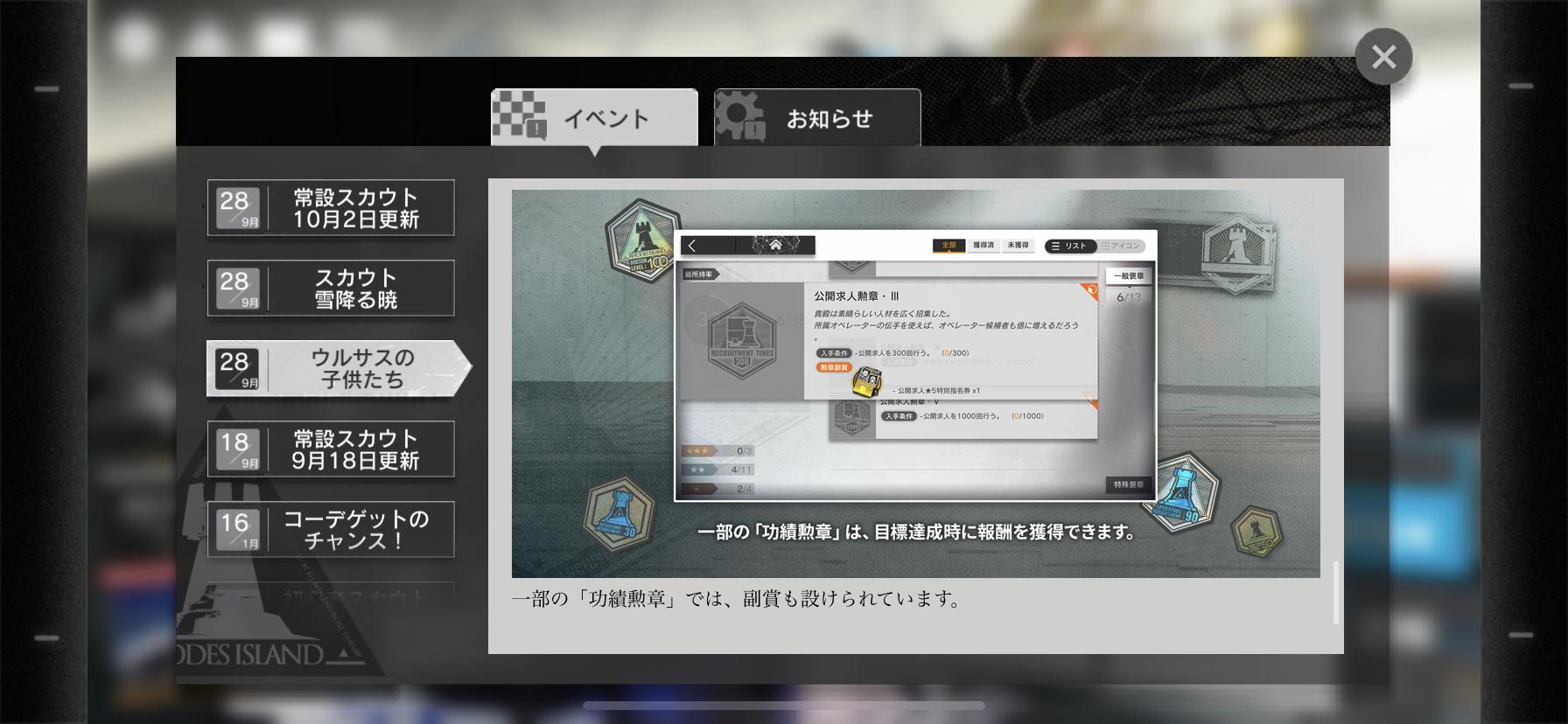 一定の条件を満たすことで、過去に開催されたイベントのシナリオを閲覧できるようになります。