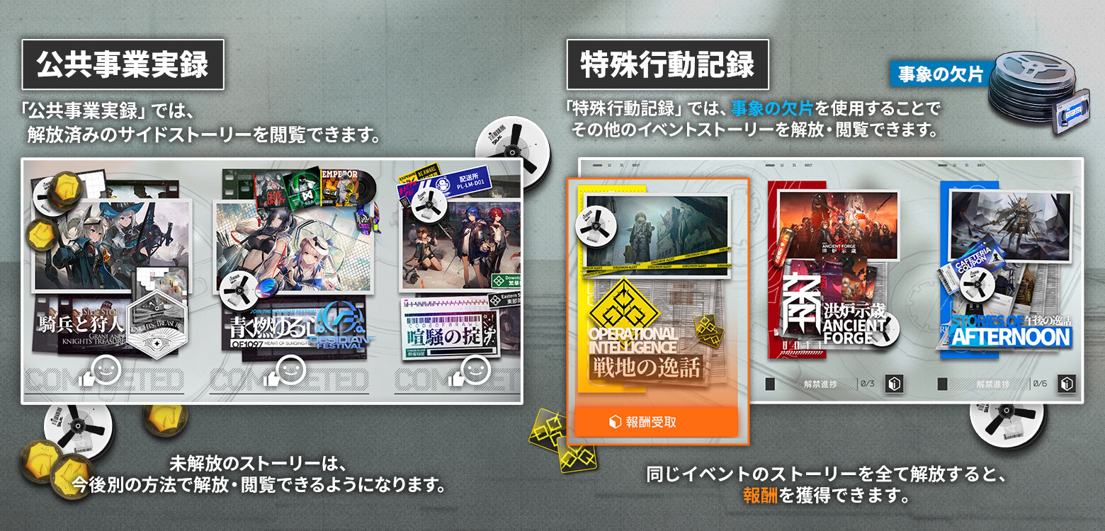 「公共事業実録」と「特殊行動記録」では、解放条件が異なります。