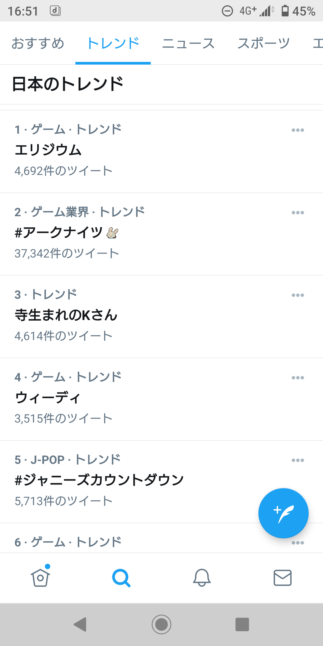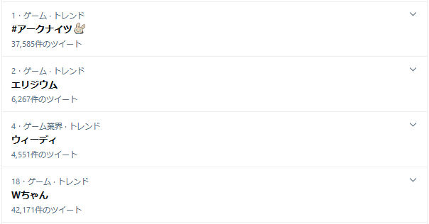 アークナイツタグがトレンド2位、エリジウムがトレンド3位ってやっぱり人気コンテンツじゃないか